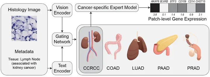 - Topics: computational pathology, spatial transcriptomics, gene expression prediction, mixture-of-experts, multimodal learning