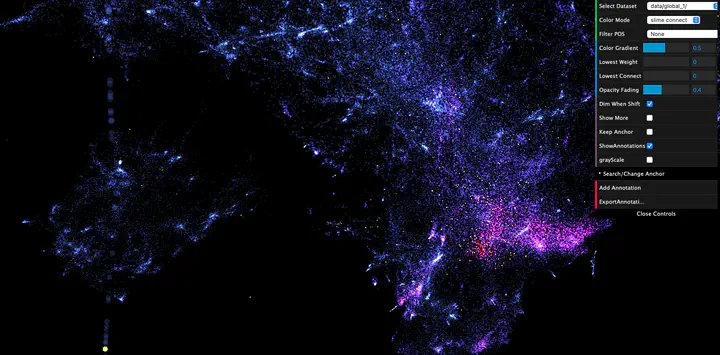 The last few months of my GSoC project have been very exciting and I hope to share why with you here in this blog post! To briefly summarize, my project has been focused on further developing the Polyglot app, a tool for visualizing 3D language embeddings. One important part of Polyglot is its utilization of the novel MCPM metric, where points are colored according to their MCPM similarity to a user-chosen “anchor point” (e.g., if “hat” is our anchor point, then similar words like “cap” or “fedora” will be colored more prominently).
