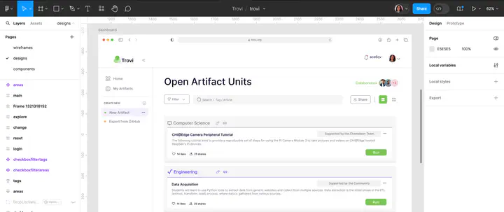 The first stage of my project began with conducting User Experience (UX) research and identifying user requirements for TROVI. I then conducted a literature review on reproducibility platforms to learn about efficient methodologies and platforms for reproducibility. This helped establish a clearer project scope. Additionally, I analyzed TROVI end-user feedback to understand redesign needs.
